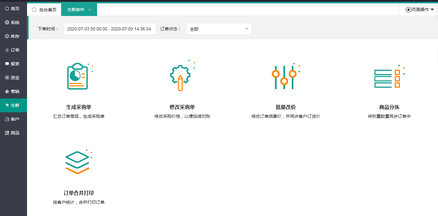 系統(tǒng)有專門的生鮮套件,分揀功能更適用于生鮮行業(yè),因?yàn)榇蟛糠值纳r商品的稱重都不是整數(shù),實(shí)時(shí)同步訂單信息。